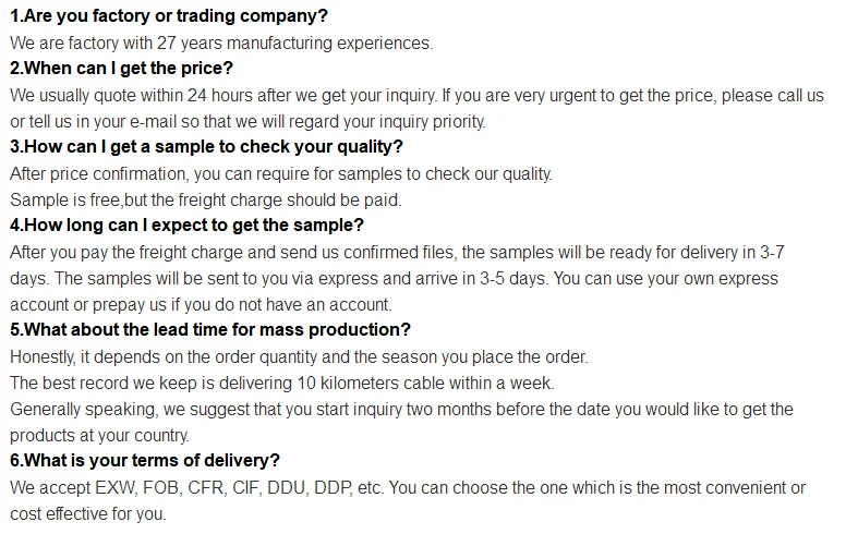*In order to quote you accurate price, kindly tell us your needed cable length quantity. Larger quantity, more discount benefit ready for you!