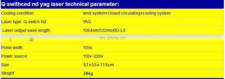 1064 nm 532nm q Switched nd Yag Laser Removal Tattoo