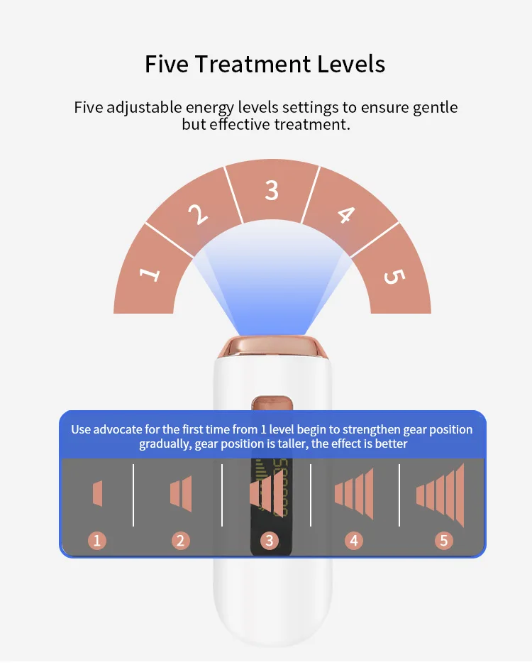 1, 5 light levels, can satisfy your demands on different hair removal parts.