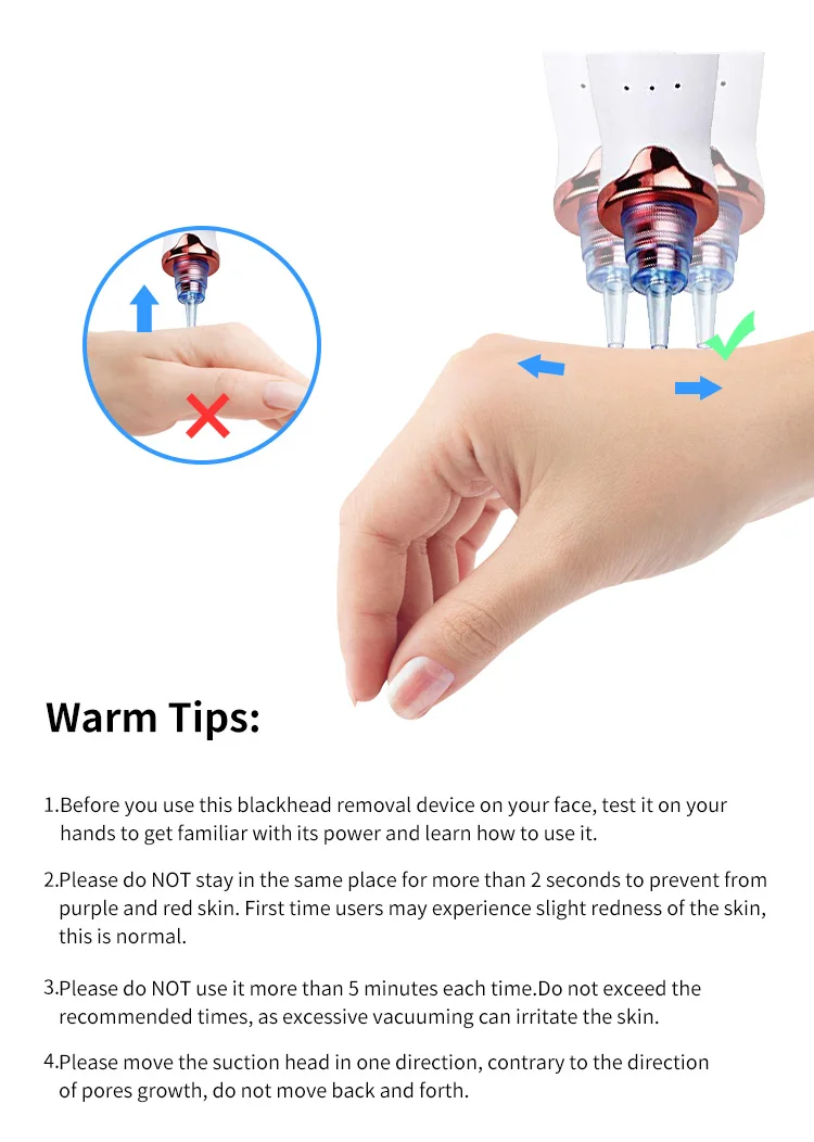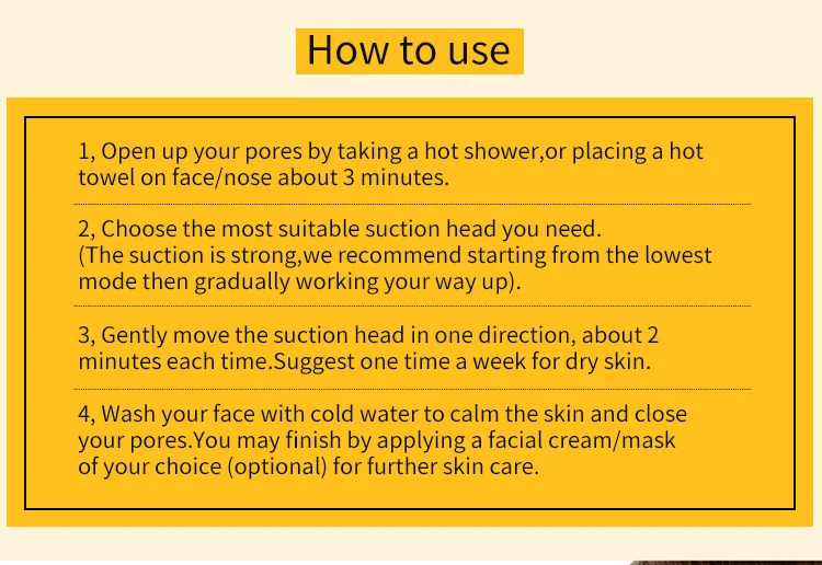 2, 3 Adjustable suction levels, you can choose the most suitable strength as per your skin status.