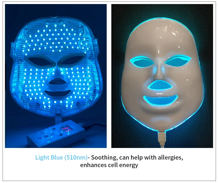 Blue (510nm)- Soothing, can help with allergies, enhances cell energy