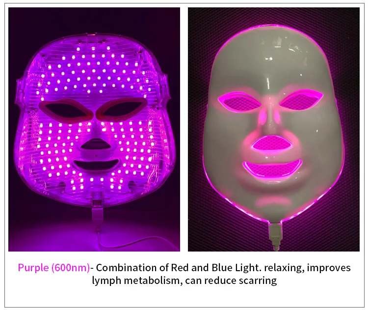 Purple (600nm)- Combination of Red and Blue Light. relaxing,improves lymph metabolism, can reduce scarringLight