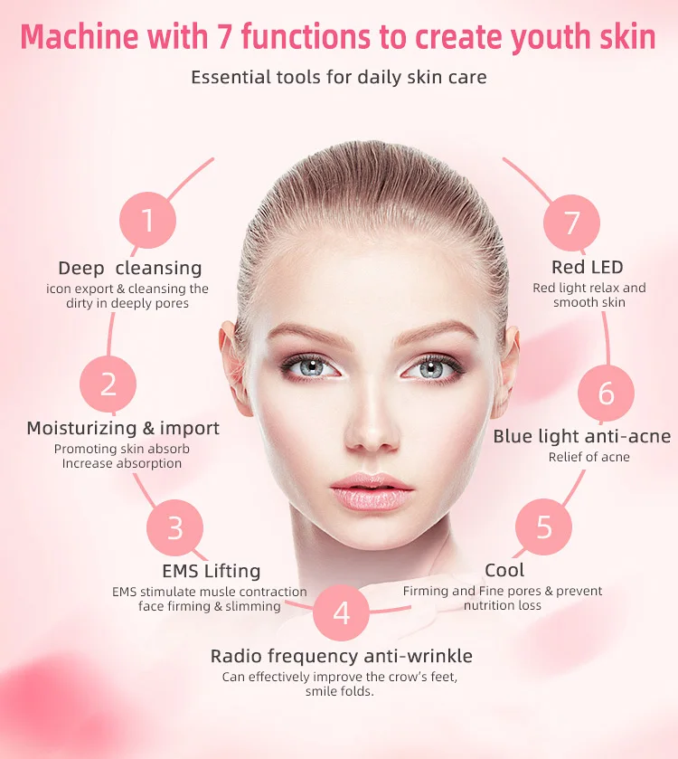 4, Ultrasonic massaging: improve regeneration, make the skin shiny and elastic.