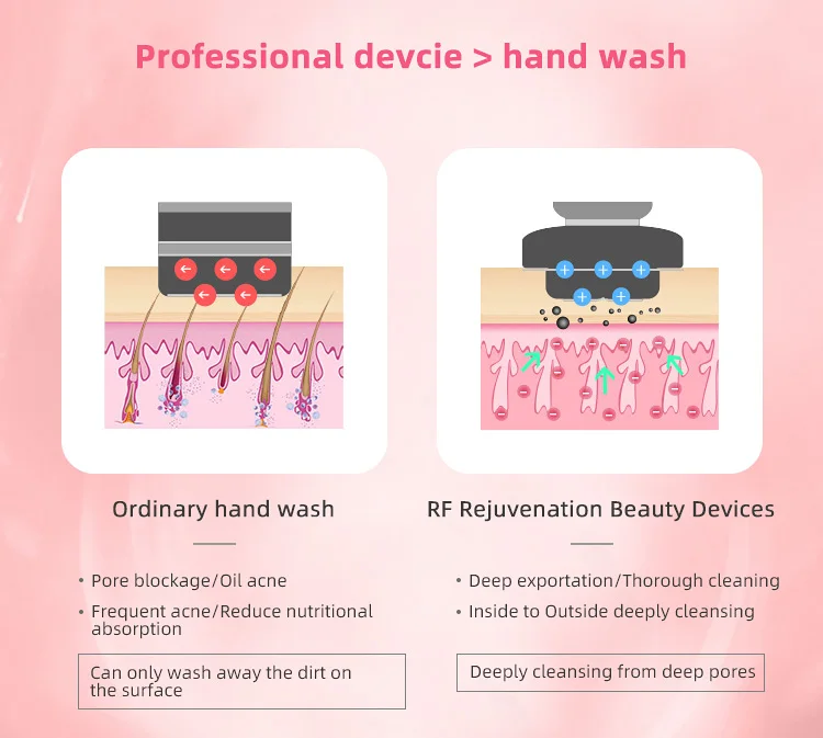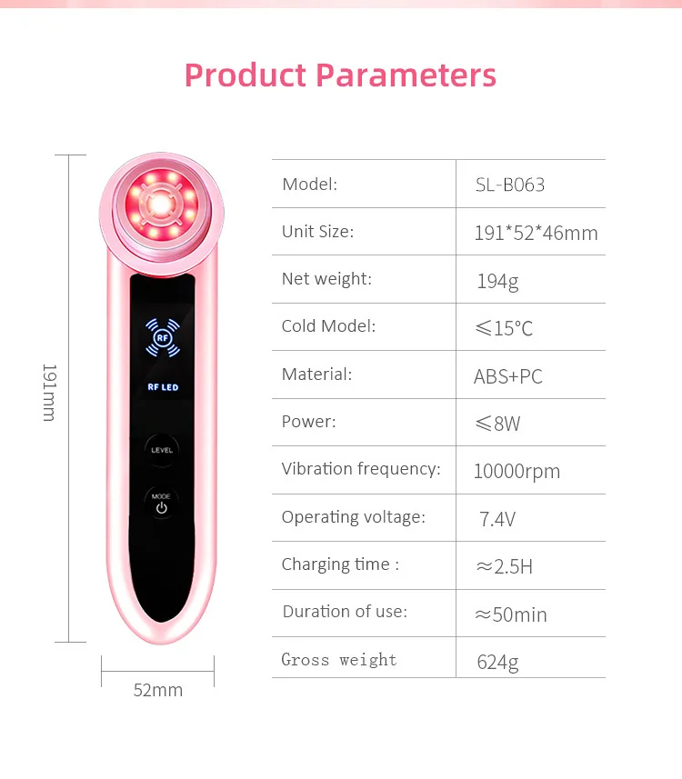 2, RF: Enhance the heat effect, brighten the skin and remove fine lines/wrinkles.