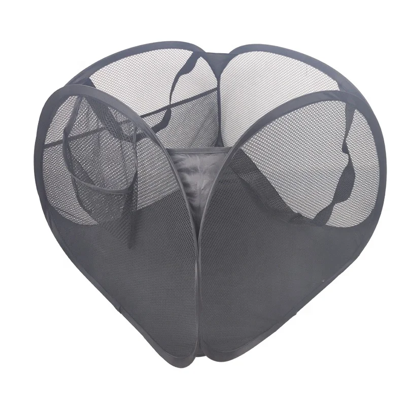 Mesh Pop up Hamper Foldable Laundry Basket With Pull Rope Lid