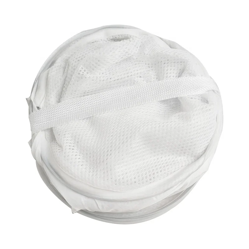 Mesh Pop up Hamper Foldable Laundry Basket With Pull Rope Lid