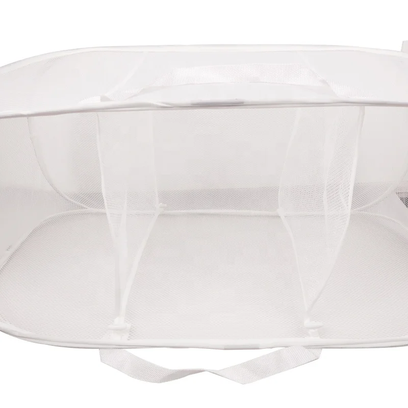 Mesh Pop up Hamper Foldable Laundry Basket With Pull Rope Lid
