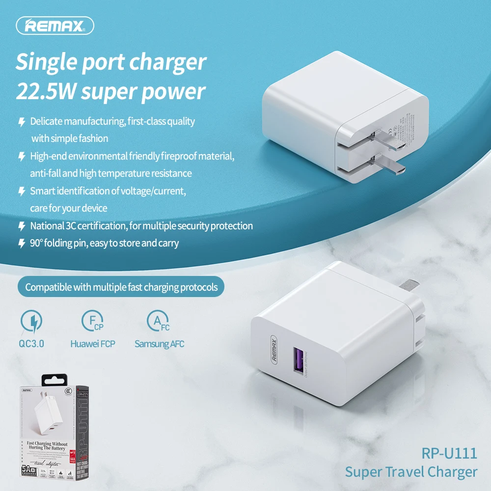 Remax Newest 22.5W Super Fasting Power Single Port Super Travel Charger