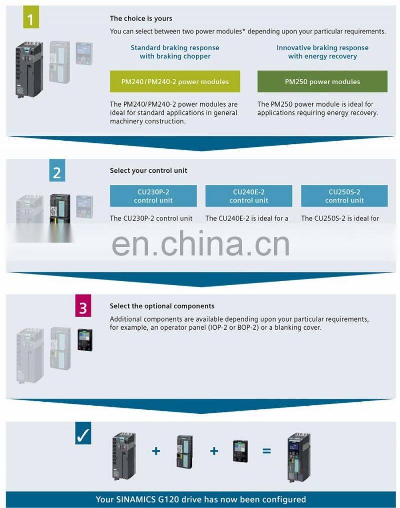 With SINAMICS G120, you will benefit from the wide range of possibilities that its modular design offers — including flexiblity and cost-savings, thanks to the need for reduced spare parts. All of this is complemented by its user-friendliness — from installation through maintenance.
