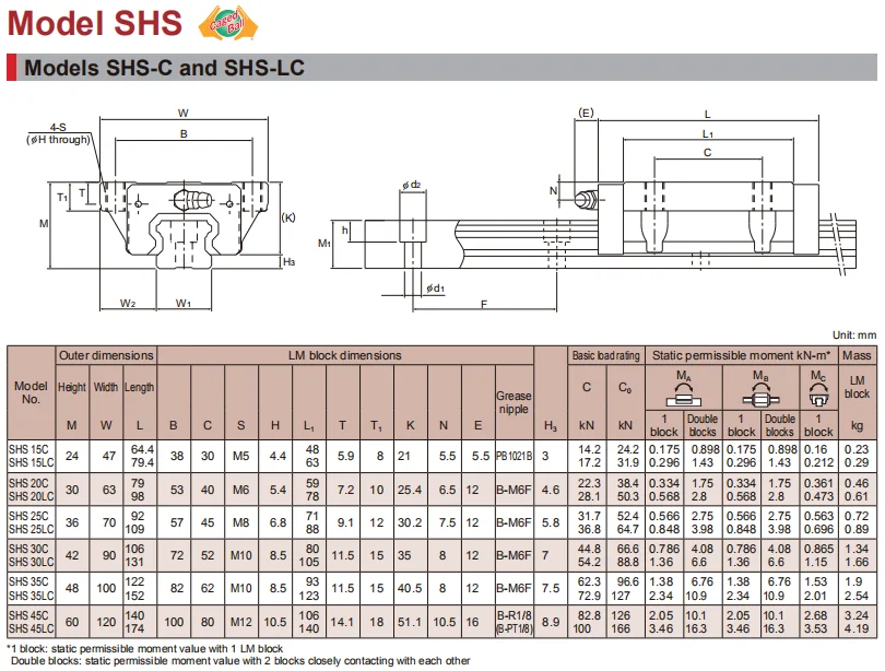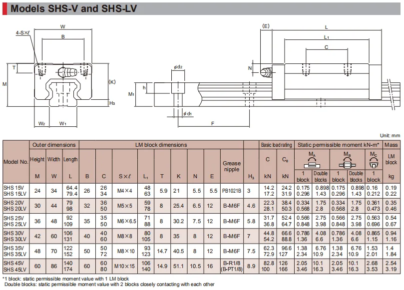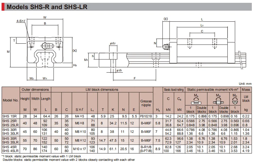 Block Series | THK SHS-C, SHS-LC, SHS-V, SHS-LV, SHS-R, SHS-LR |