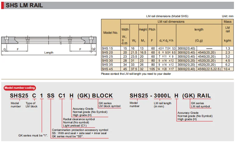 THK SHS 15V/20V/25V/30V/35V/45V Linear Guide Rail SHS 15LV/20LV/25LV/30LV/35LV/45LV