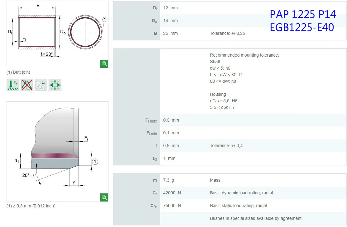 PAP 3530 P14 PAP 1225 P14 Flanged bushes with material bronze poly composite