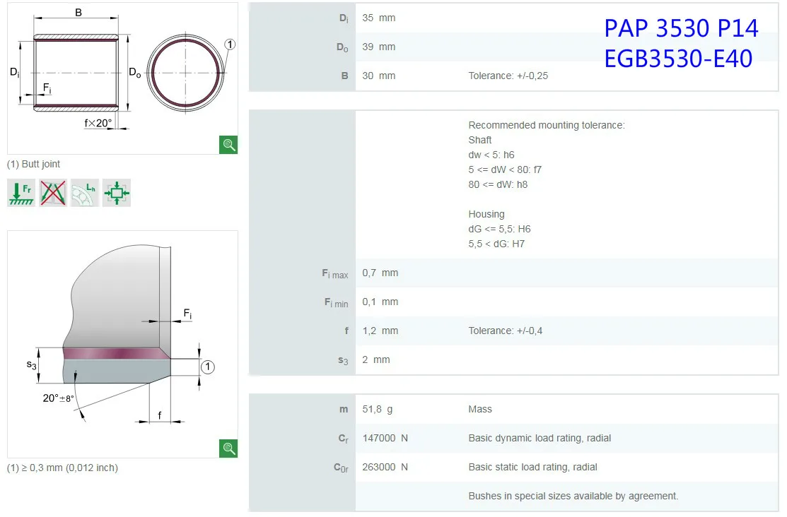 Home > Products > Other bearing > PAP 3530 P14 PAP 1225 P14 Flanged Bushes With Material Bronze Poly Composite