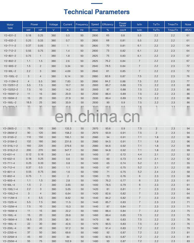 Y2 Series 5.5kw 7.5 hp 3 phase electric asynchronous motor
