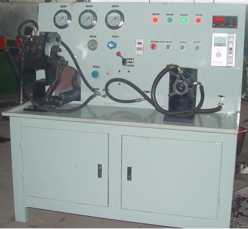 Symmetry detection power steering, left and right torque, internal leakage, steering, heavy unilateral. Power steering pump pressure, flow, sealing and valve sealing hydraulic steering system failure. Hydraulic pump can be adjusted at any time of the working conditions of the hydraulic system to detect various parameters of the components. Particularly adapted to the inspection and testing of heavy vehicles hydraulic steering and performance. The machine uses pressure gauge torque, work pressure and other parameters.