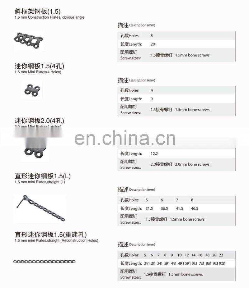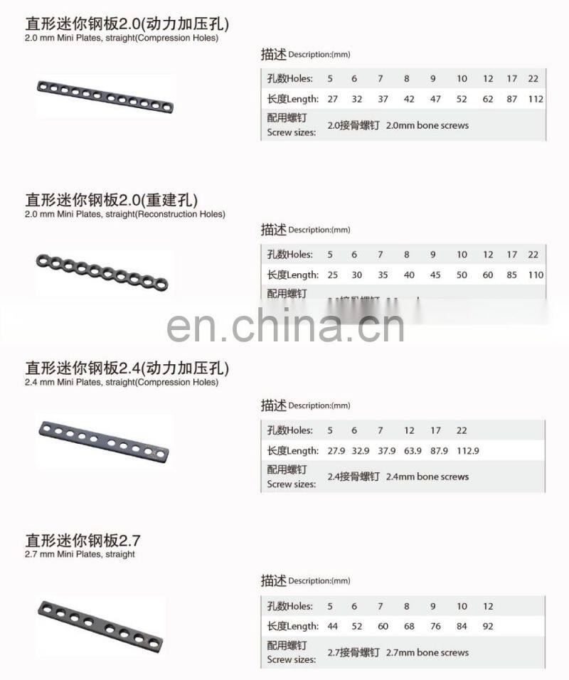 Orthopedic Plates for Fixation of Mini Bone Fractures