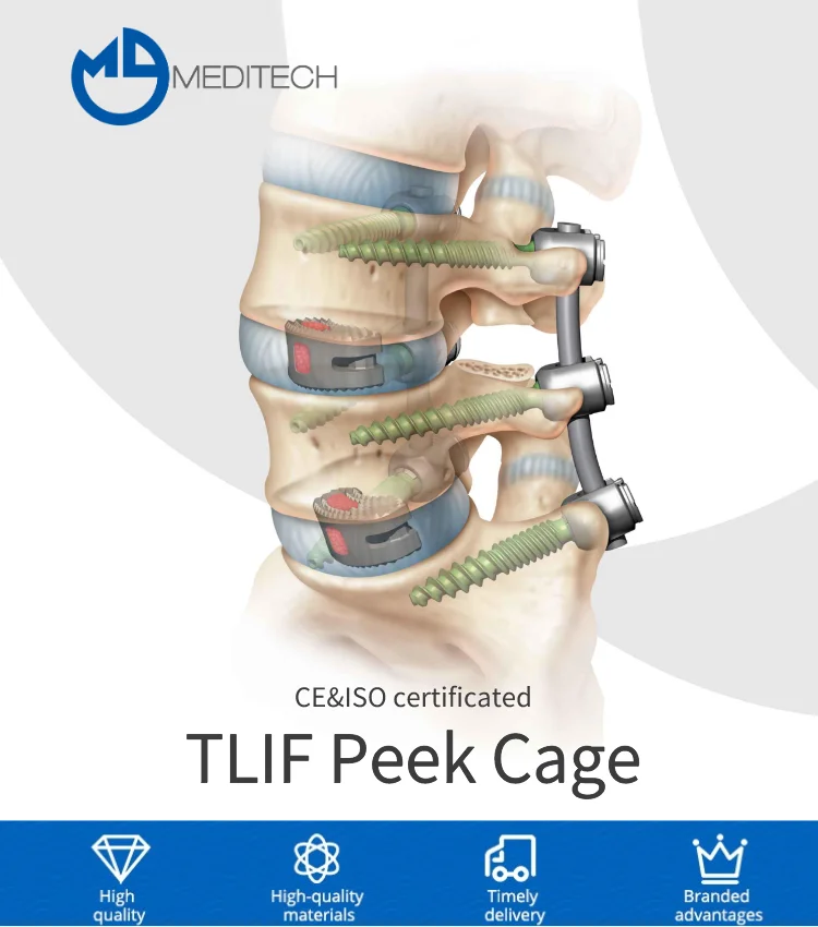 High Quality Orthopedic Surgical Spinal Implants TLIF Peek Cage Forr Spine Fixation Surgery