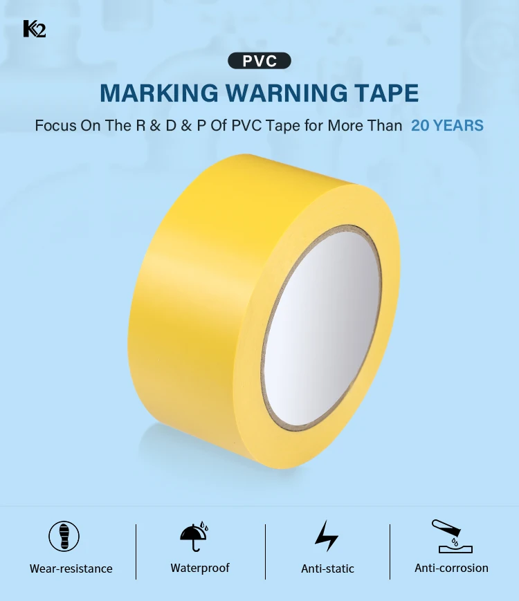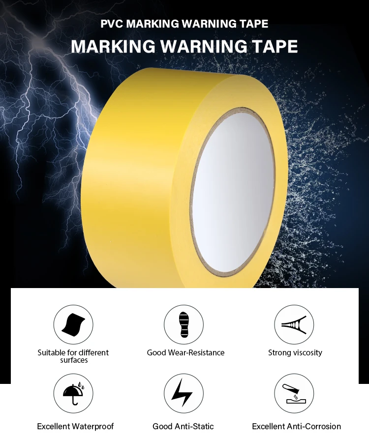 Warning tape is made of PVC film as the base material and coated with rubber pressure sensitive adhesive