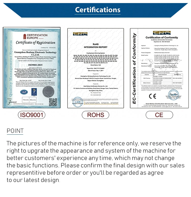 Powerful factory, giving the competitive price and best technology support 12-years’ experience in producing beauty machine, strong R&D 1 years-warranty and 8/24 online after-sale service CE Certification, the key for you to legally use and sell the machine Diversity of customized service, strong OEM & ODM capability available.