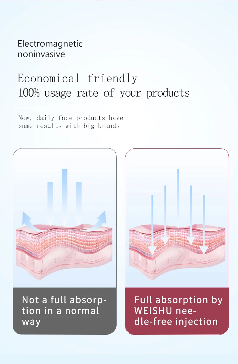 Weishu light-water is a unique new type of beauty instrument with electromagnetic technology in the world, which can inject nutrition into the skin deeply, make the skin tender, smooth and bright, and improve the dark complexion, thick pores, dry and other problems.