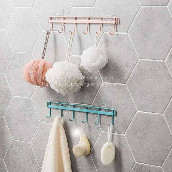 Bathroom Punch-free Kitchen Strong Viscose Coat Hook Towel Rack Door Wall Hook with 6 Hooks