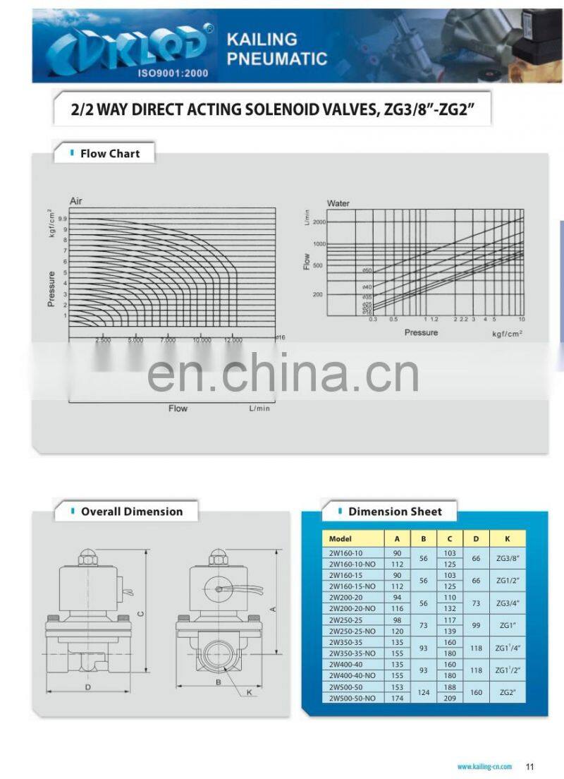 2W Series 2/2 Way 2W500-50 DC24V Direct Acting Air Water Solenoid Valve