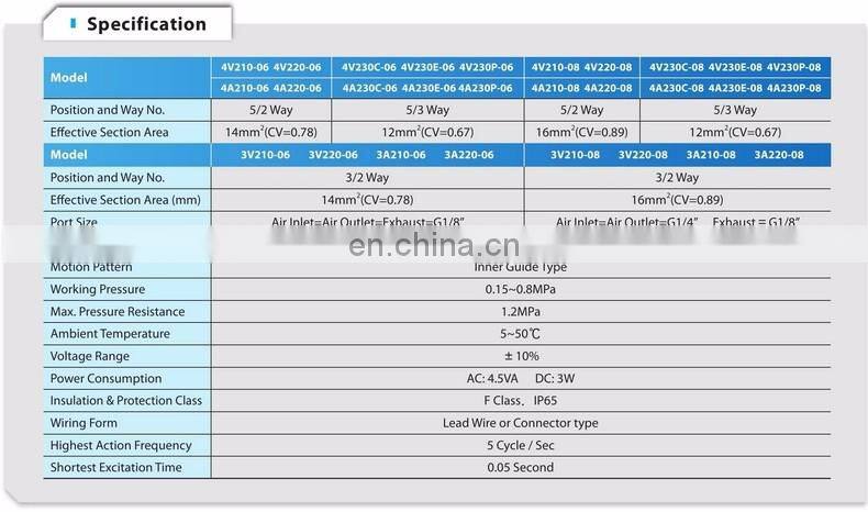 3. Three position 4V210-08 solenoid valves have three kinds of central function for your choice.