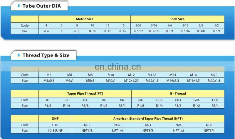 Tube size: 4, 6, 8, 10, 12, 14, 16mm