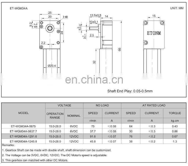 Notice: The above specification is just for reference. The gear motor's gear, shaft, speed, ratio, torque and motor type can be customized.