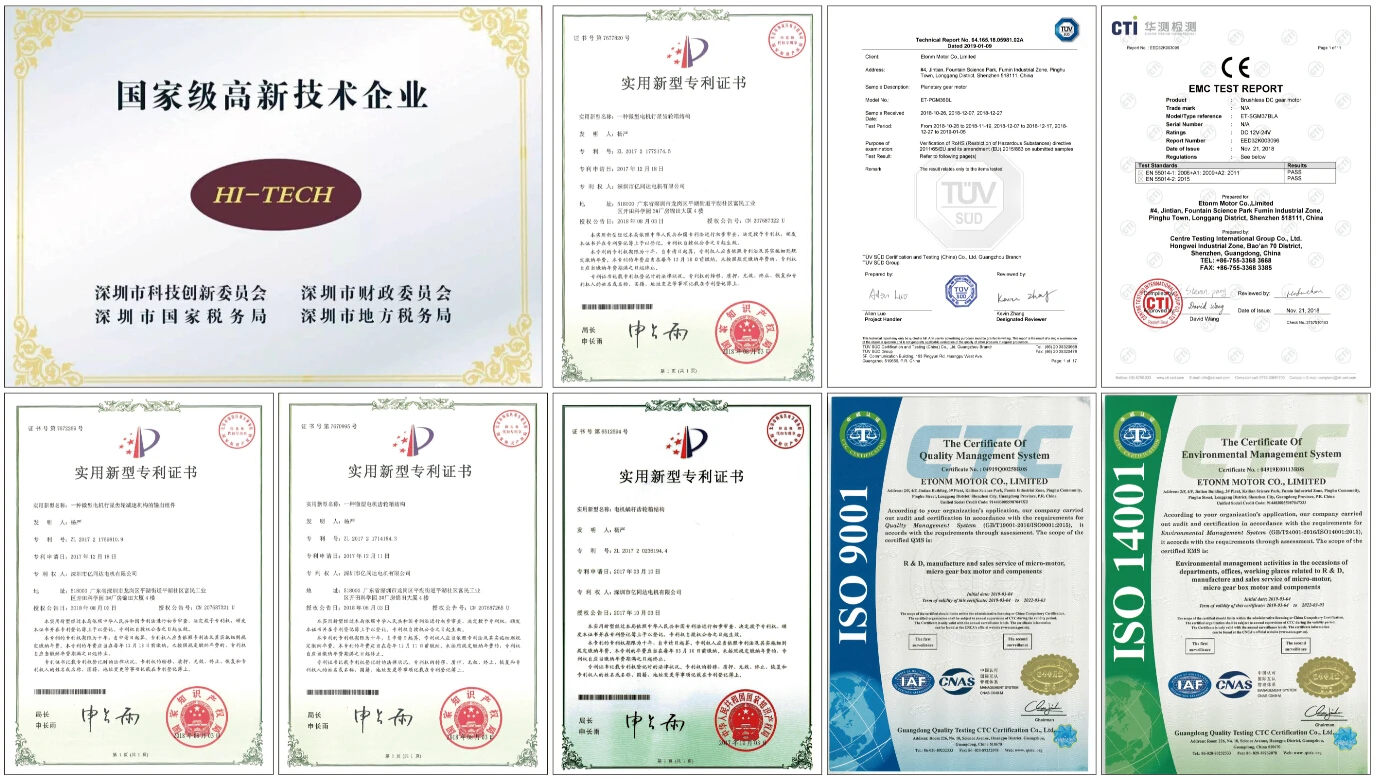 Our motors get many patents, all motor can pass CE ROHS certificate.
