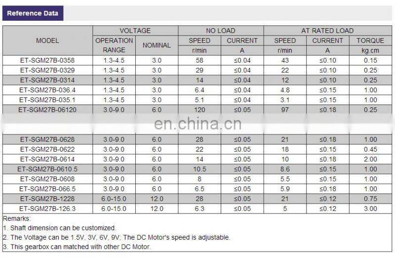 ET-SGM27B 3v 6v 12v dc Small Gearbox Electric Motor 5rpm 0.3Nm for Automatic Valve DIY