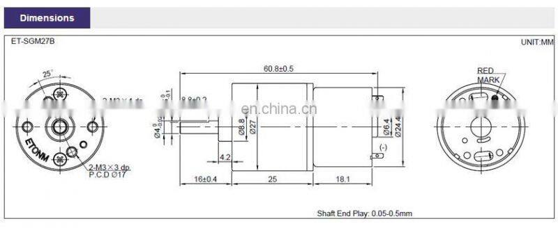 Home > Products > Spur Gear Motor > ET-SGM27B 3v 6v 12v dc Small Gearbox Electric Motor 5rpm 0.3Nm for Automatic Valve DIY