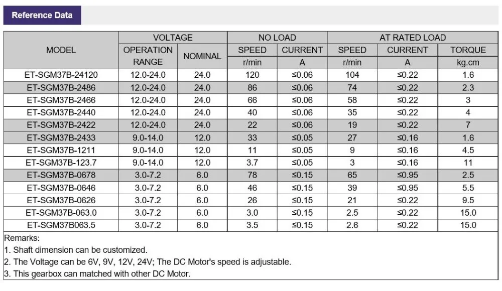 Notice: The above specification is just for reference. The gear motor's gear, shaft, speed, ratio, torque and motor type can be customized.