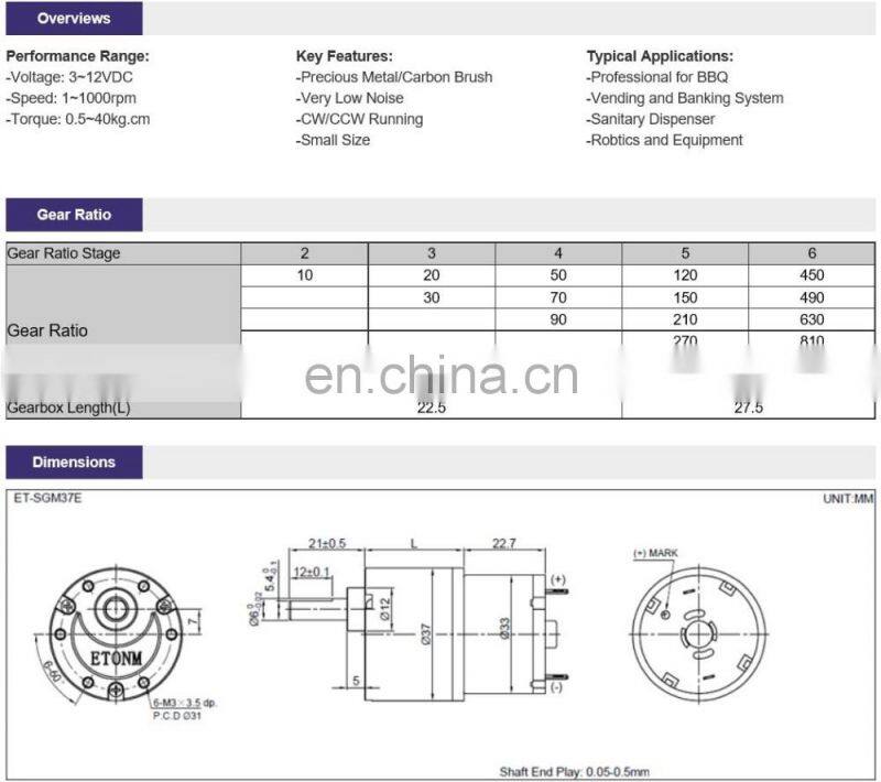 Etonm Motor is an ISO9001:2008 company, Professionally in R&D and manufacturing Micro DC Motor and Gear Motor. We started our business since 2004, now we have two factories, one is for Mini DC Motor, the other is for Gearbox. Even since the beginning, Etonm have been holding “Mutual-Benefit, Truthful and Innovative” as it core value.