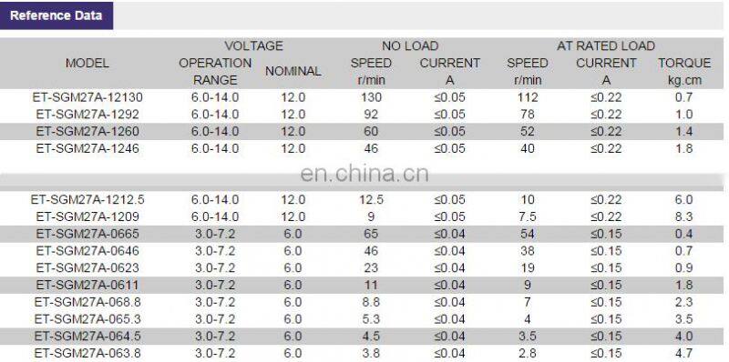 | 1.Type | ET-SGM27A DC Gear Motor |