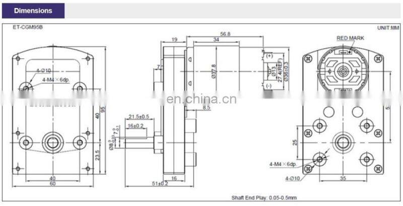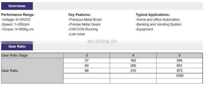 Notice: The above specification is just for reference. The gear motor's gear, shaft, speed, ratio, torque and motor type can be customized.