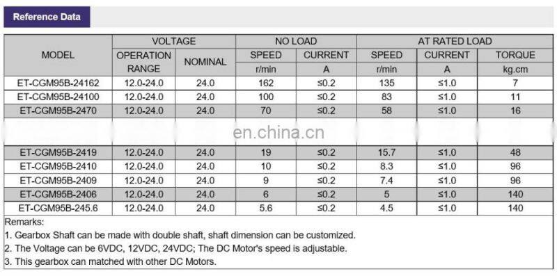 ET-CGM95-B Flat Gear Motor Gear Motor 12v High Torque 12v Dc Gear Motor 24v 7KG - 140KG