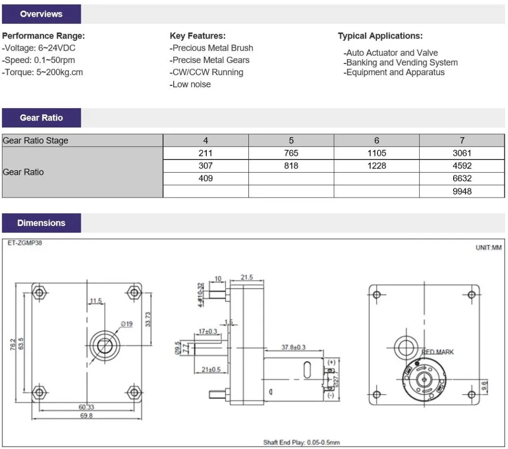 | Model Number | ET-ZGMP38-A micro spindle motor geared dc motor 12v 25nm |