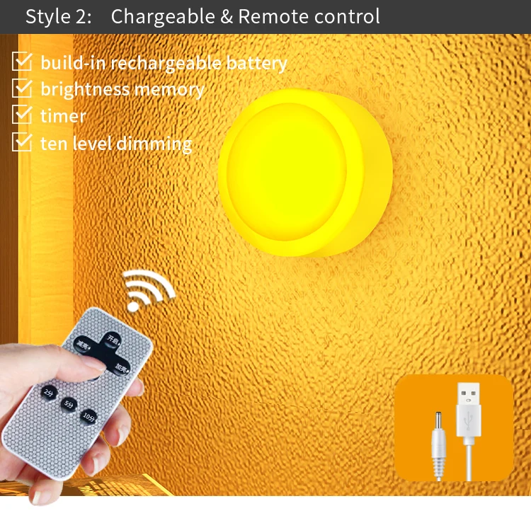 Round Hotel Bedroom Boundary Indoor Remote Control Led Night Light Flat Panel Wall Light Wireless Light