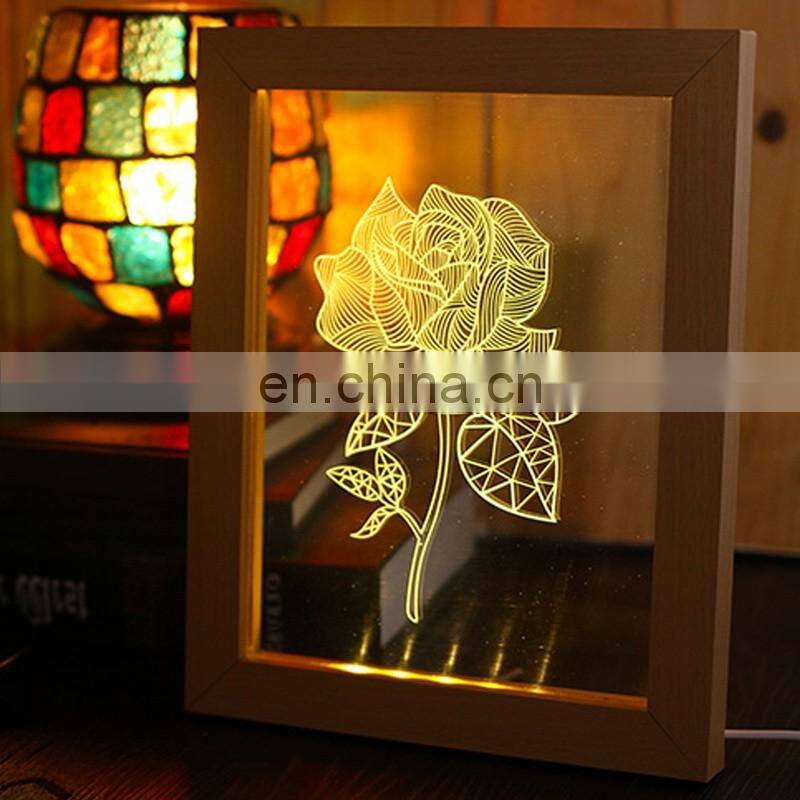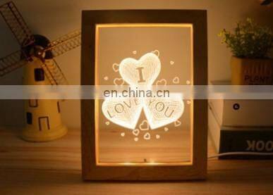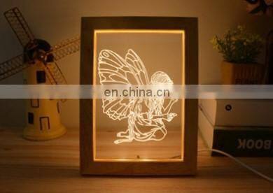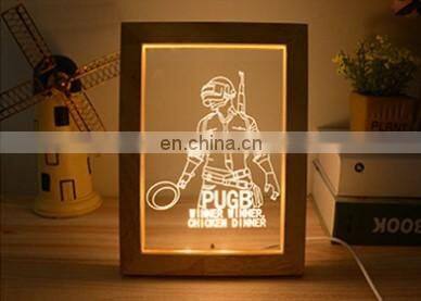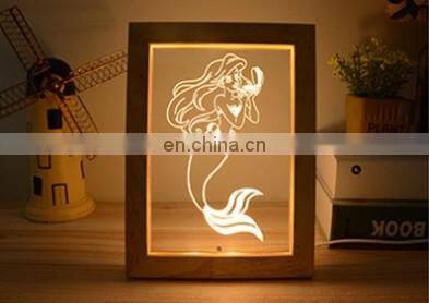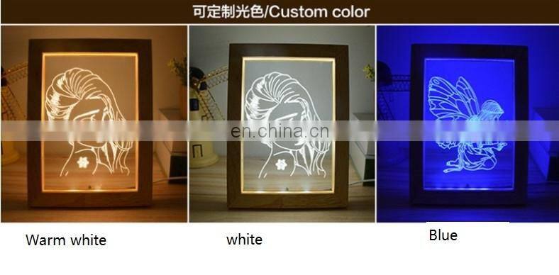 Acrylic 3D LED wood Photo frame night light with USB plug
