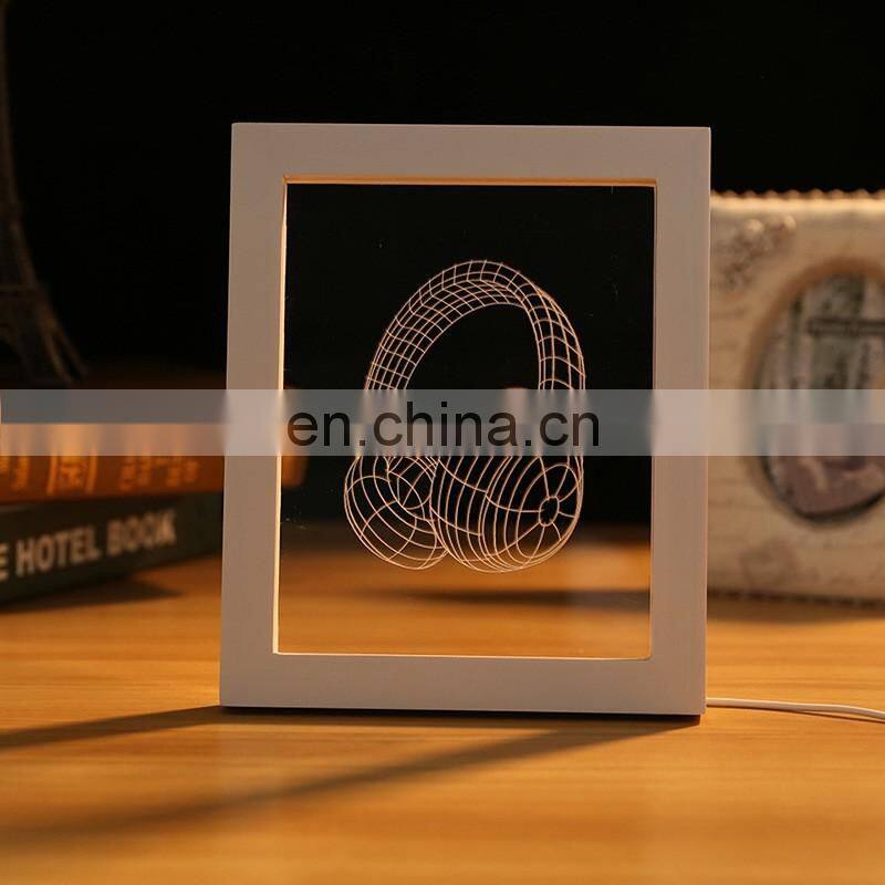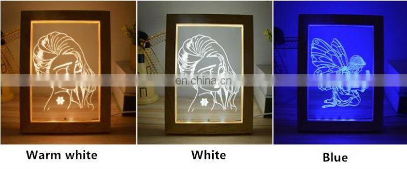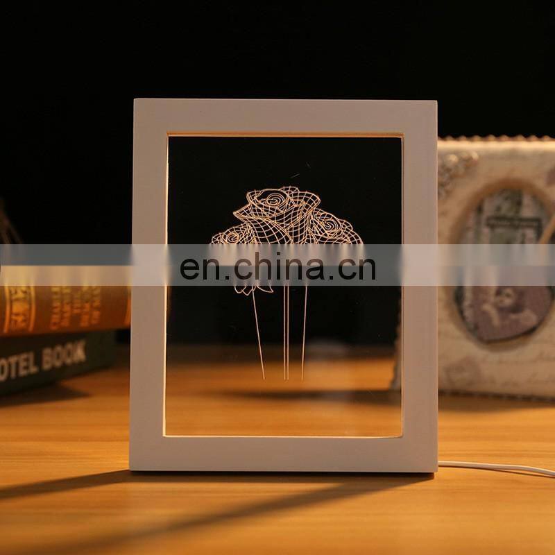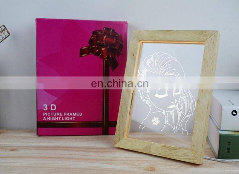 Custom New Product Decorative Wooden Photo Frame 3D Led Night Lamp Light