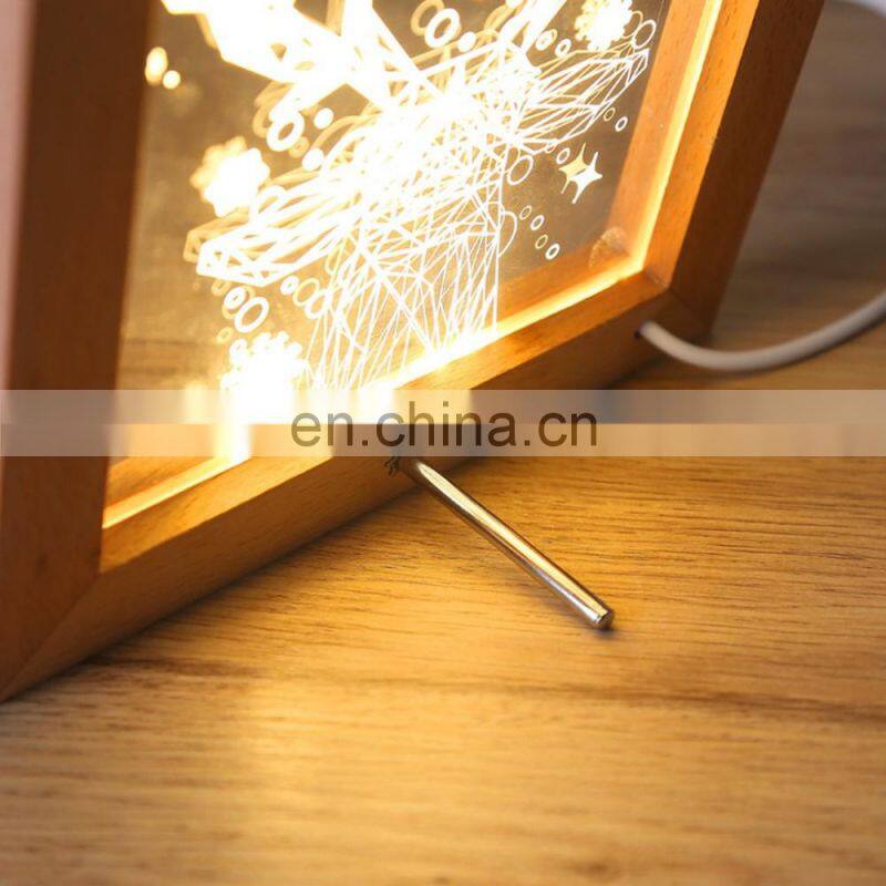 New Product 3D Wooden Photo Frame Led Acrylic Table Desk Night Light Lamp