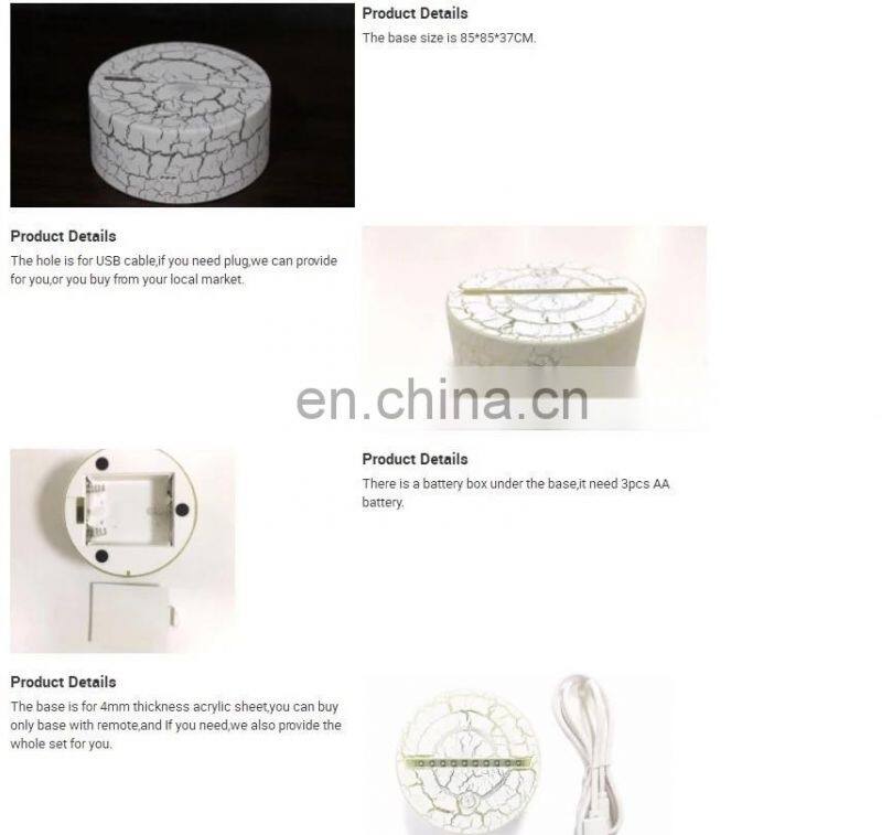 Home > Products > Quick shipping Items > Hot Sale Customize 3d Illusion Lamp With White Crack Base