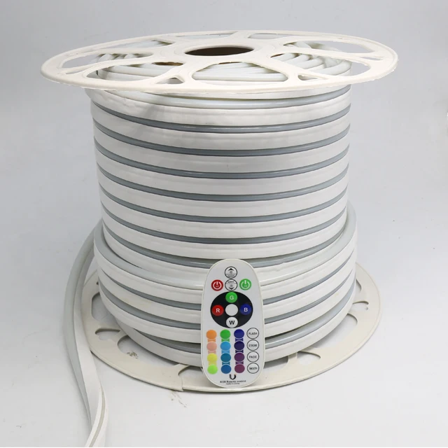220v RGB Led Neon Flex Tube Light With Remote Controller Waterproof SMD5050 Building Lighting