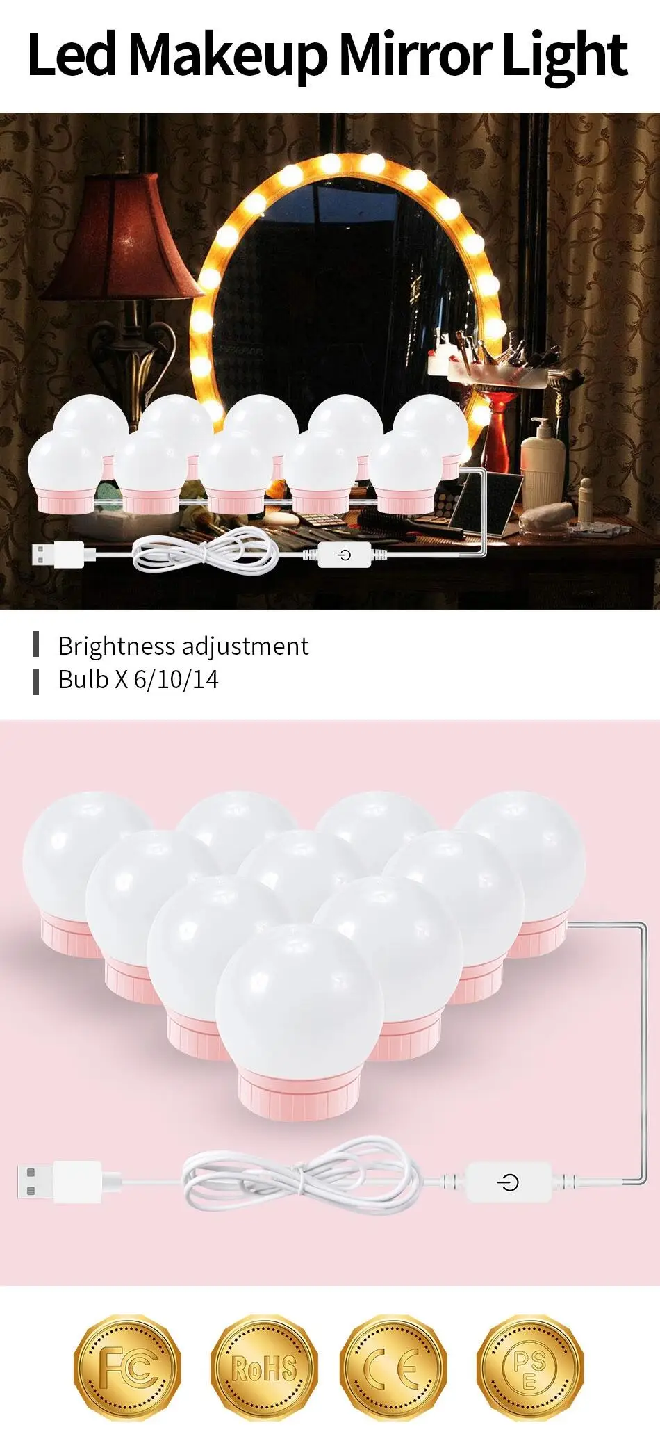 Home > Lights & Lighting > LED Lighting Decoration > LED Strip Light > Fashionable 5V Make up Bathroom Led Light Mirror