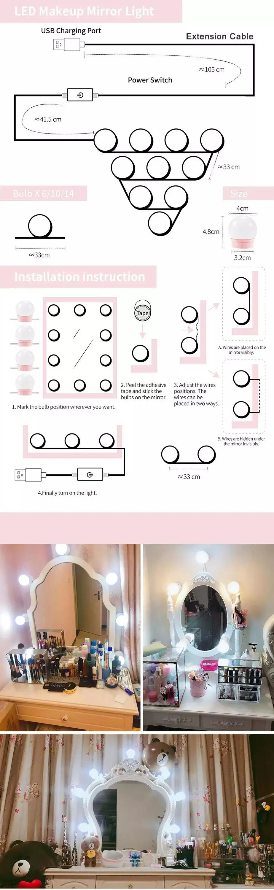 the makeup mirror. You can make-up faster with these bright lights!