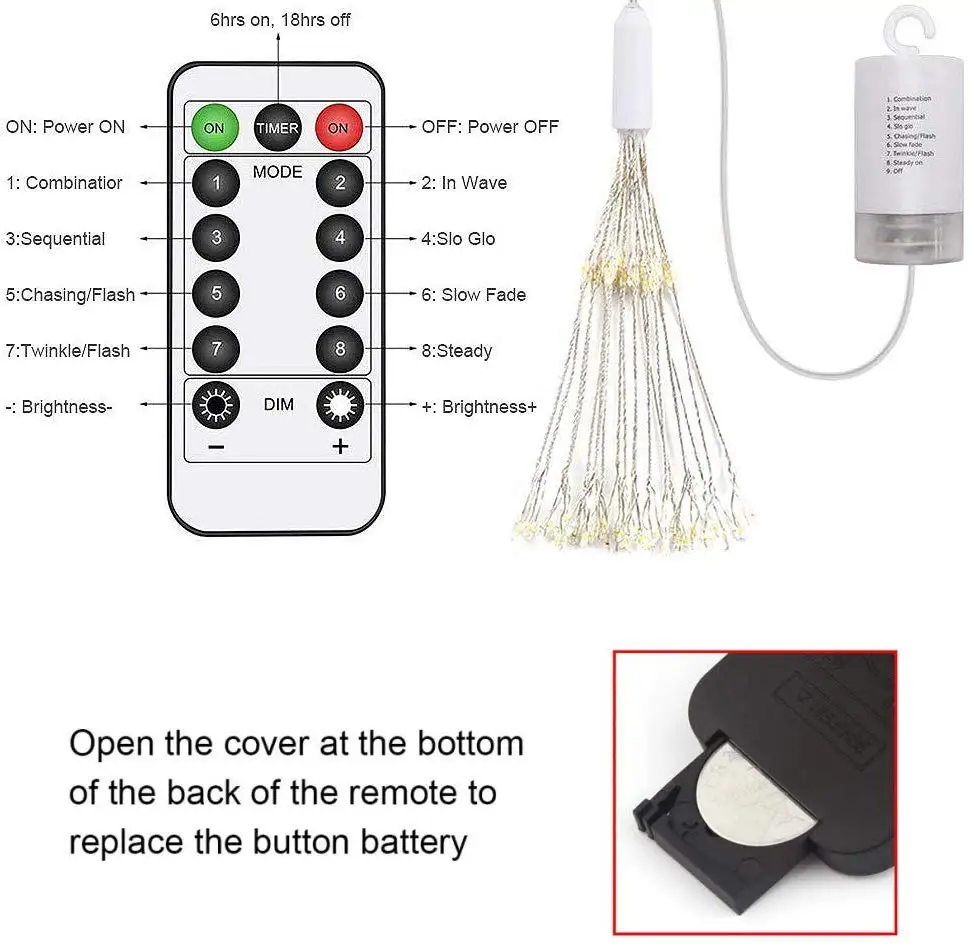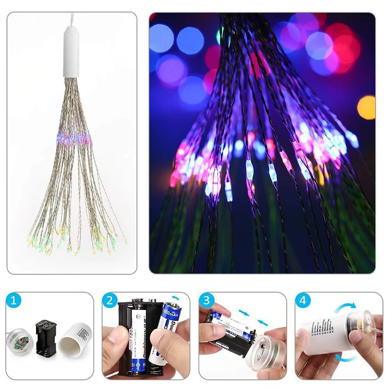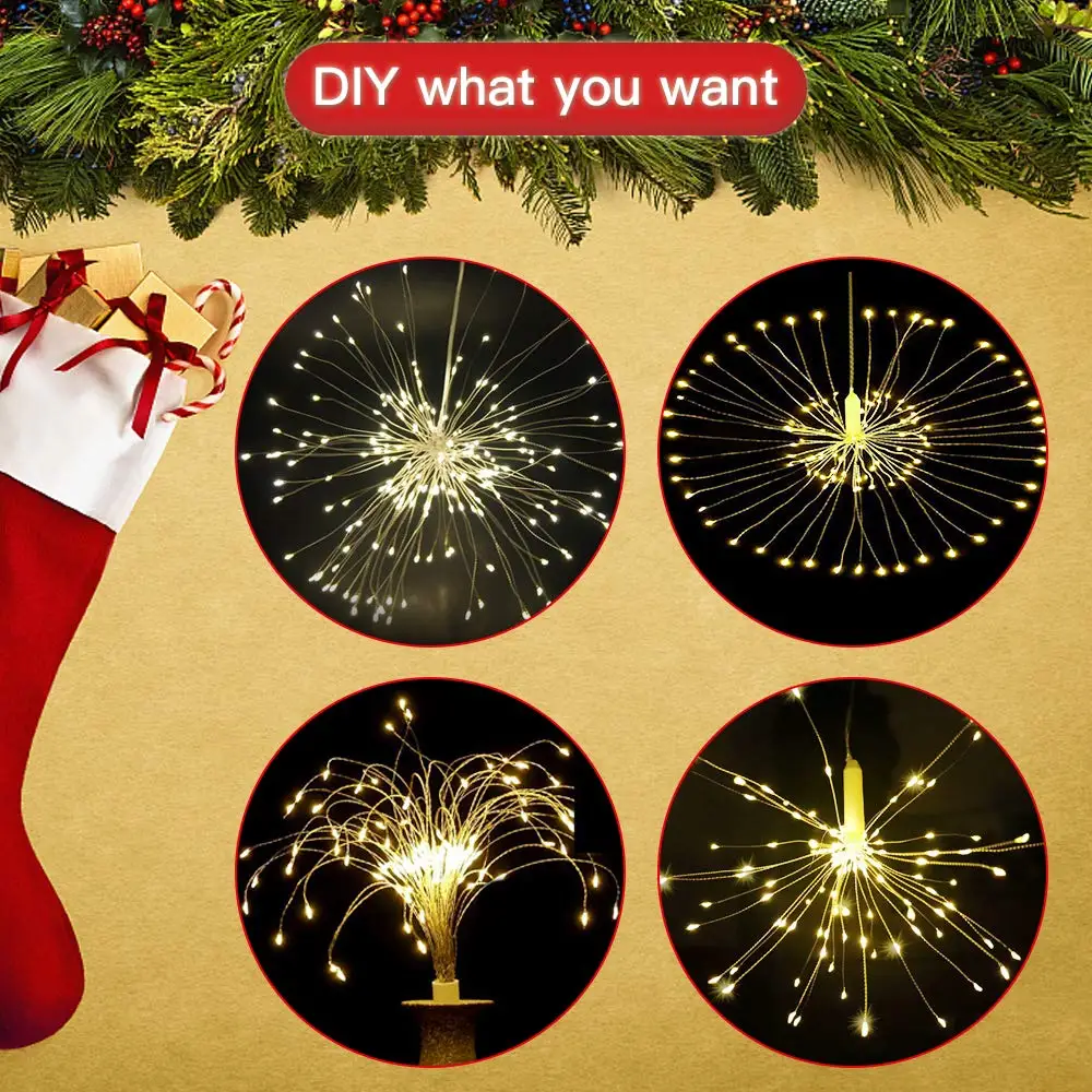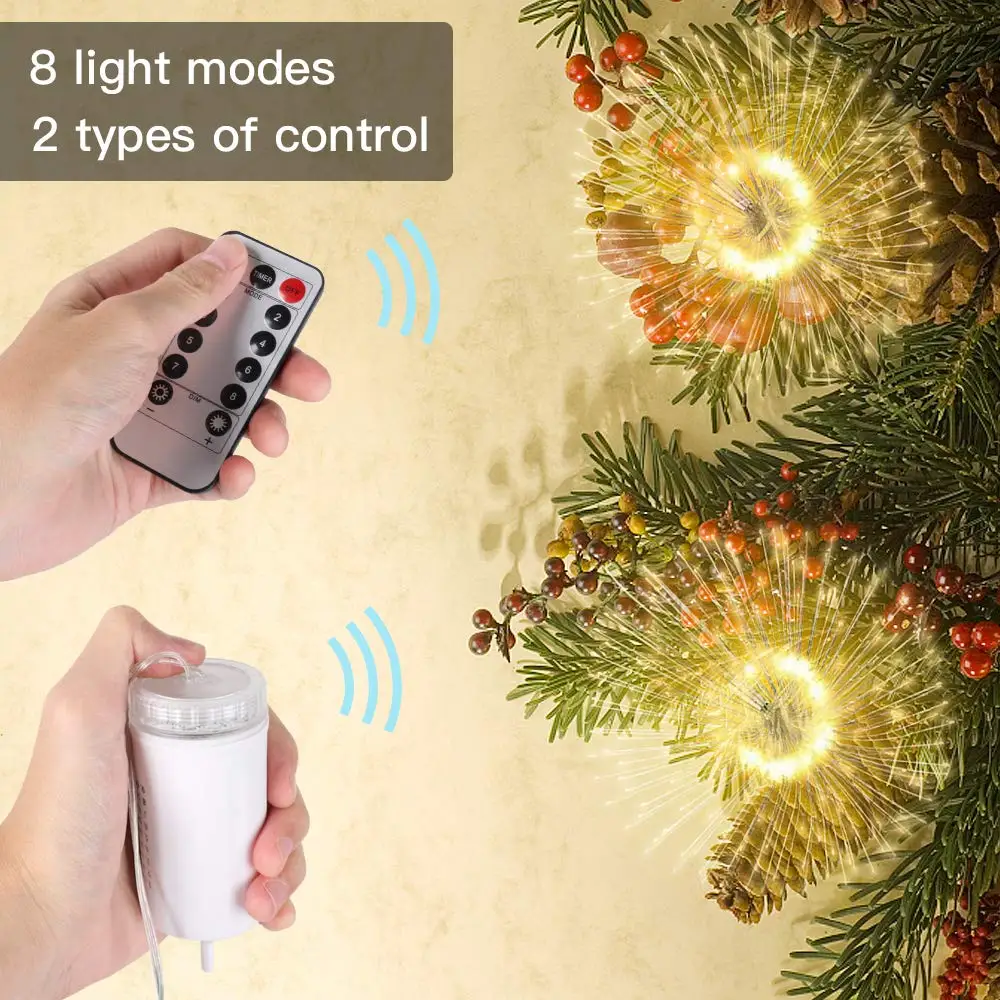 Hanging Firework LED Fairy String Light Christmas Party Decor Xmas 8 Modes Remote Outdoor Waterproof Christmas LED String Lights