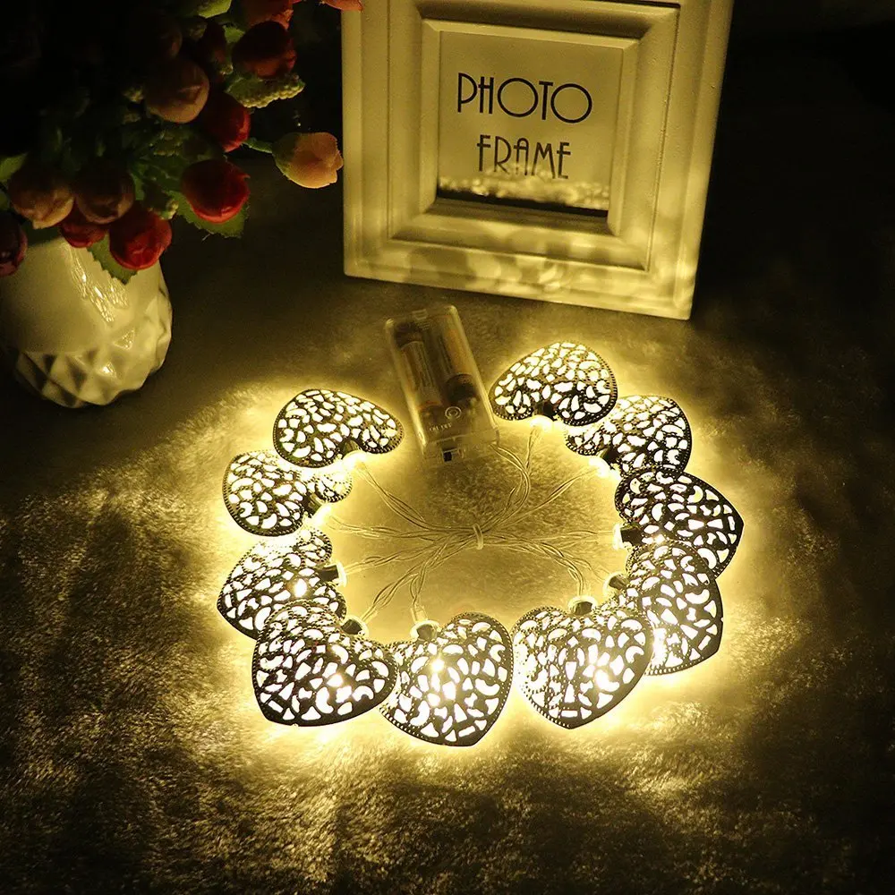 10Leds Gold Silver Metal Heart Shape Battery Operated Fairy Lights String