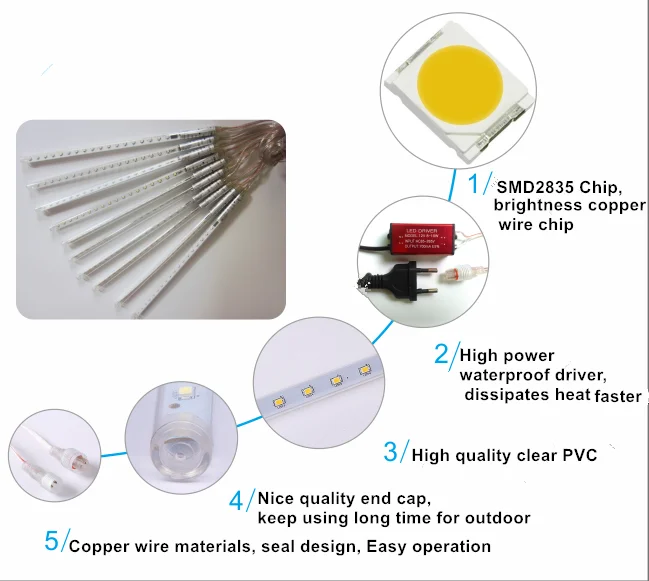 Bright SMD2835 10Sets Led Meteor Shower Rain Tube Lights