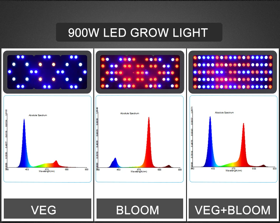 900w Full Spectrum LED Grow Light With 10W Double Chips For Indoor Grow Tent Hydroponics Plants Growing and Flowering Seeding